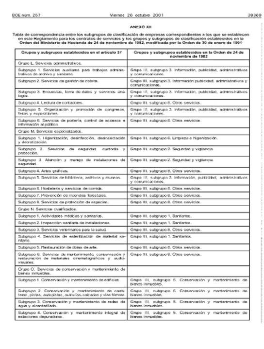 g) El Real Decreto 609/1982, de 12 de febrero y la Orden de 24 de noviembre de 1982, relativos a la clasificación de empresas consultoras y de servicios.