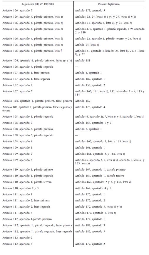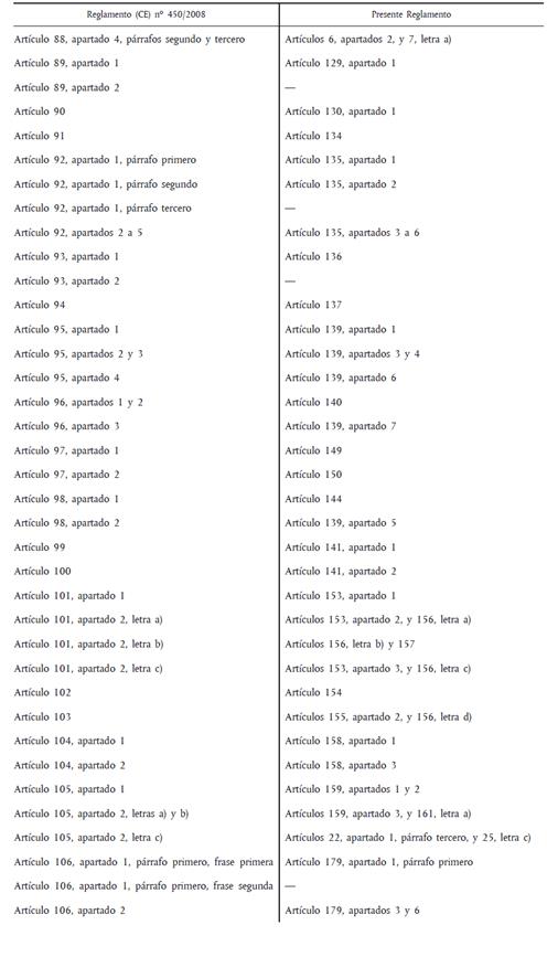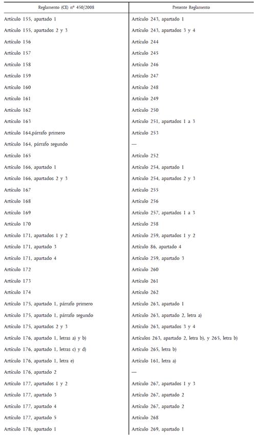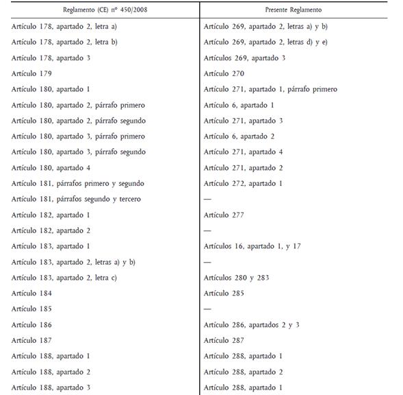 Referencias posteriores: Corregidos varios arts. según la corrección de errores en DOUE L7 de 12 de enero de 2017 Modificado el art. 136 por reglamento (UE) 2016/2339, de 14 de diciembre Corregidos los arts. 37, 73, 106, 116, 117, 131, 145, 158, 217, 253, 257, 265, 281 y 284 según Corrección de errores en DOUE L267, de 30 de septiembre de 2016 Corregidos el considerando 57 y el art. 288 según Corrección de errores en DOUE L287, de 29 de octubre de 2013 Referencias anteriores: Quedan derogados: -Reglamento (CE) n.º 450/2008, del Parlamento Europeo y del Consejo, de 23 de abril de 2008, por el que se establece el Código Aduanero Comunitario (Código Aduanero Modernizado). -Reglamento (CEE) n.º 3925/91, el Reglamento (CEE) n.º 2913/92 y el Reglamento (CE) n.º 1207/2001 con efectos a partir de la fecha mencionada en el artículo 288, apartado 2. -Las referencias a los Reglamentos derogados se entenderán hechas al presente Reglamento con arreglo a las tablas de correspondencias que figuran en el anexo. -En el artículo 3, apartado 1, sexto guión, del Reglamento (CEE) n.º 2913/92, se suprimen las palabras "y de Mayotte" con efectos a partir del 1 de enero de 2014. -En el artículo 9, apartado 1, letra a), del Reglamento (CEE) n.º 2658/87, se suprime el primer guión con efectos a partir de la fecha a que se refiere el artículo 288, apartado 2. |