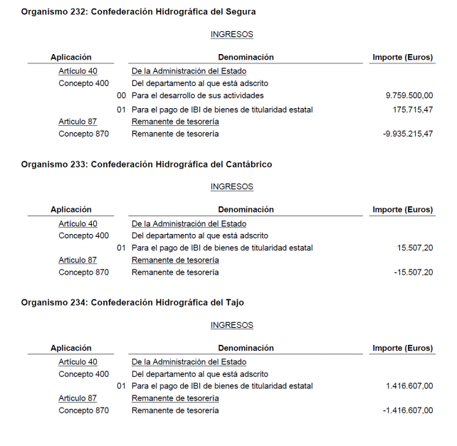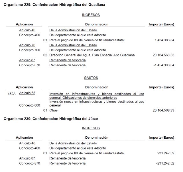 Modificación de los Presupuestos de las Confederaciones Hidrográficas