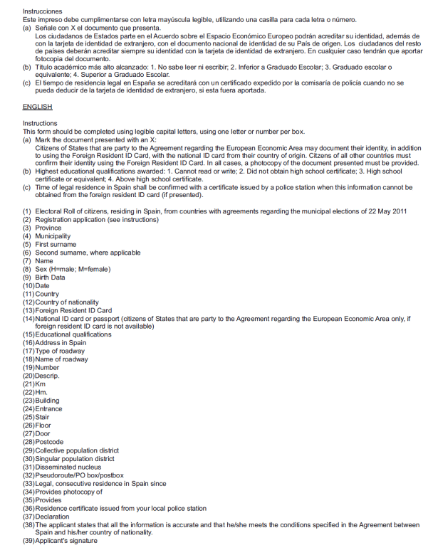 3. Se aprueba el modelo de solicitud de inscripción para presentar en los ayuntamientos así como sus instrucciones de cumplimentación, que también se incluyen en el anexo a esta Resolución.