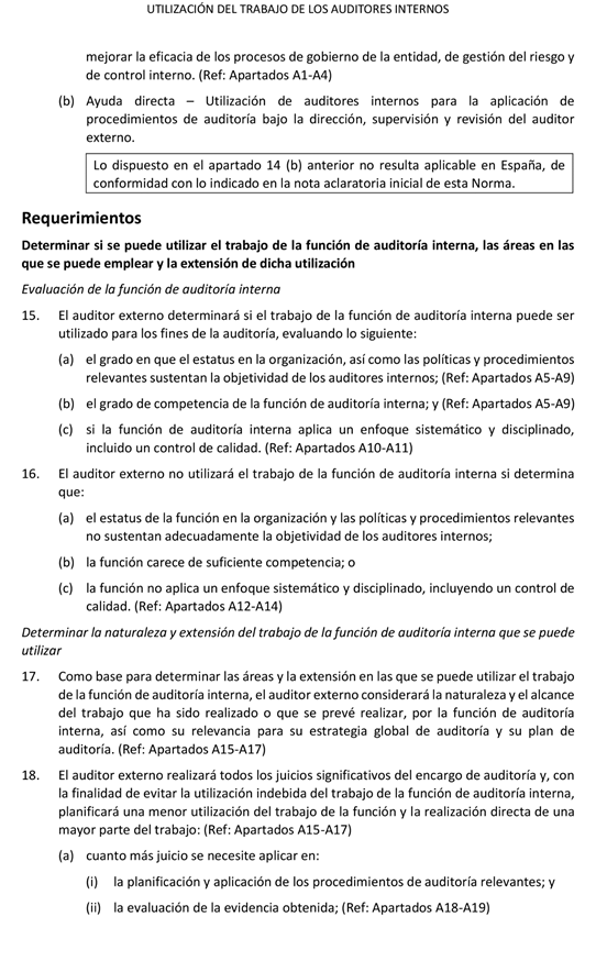 TÍTULO: NIA-ES 610 (revisada). Utilización del Trabajo de los Auditores Internos [1] |