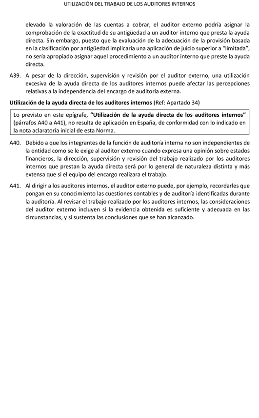 [1] Adaptada para su aplicación en España mediante Resolución de 11 de abril de 2024, del Instituto de Contabilidad y Auditoría de Cuentas, por la que se publica la actualización de las Normas Técnicas de Auditoría, resultado de la adaptación de las Normas Internacionales de Auditoría para su aplicación en España (NIA-ES), las Normas de Control de Calidad Interno, resultado de la adaptación de las Normas Internacionales de Gestión de Calidad 1 y 2 para su aplicación en España (NIGC 1-ES y NIGC 2-ES) y el Glosario de Términos, resultado de la adaptación del publicado junto con estas Normas Internacionales para su aplicación en España (BOE del 25), aplicable en la forma indicada en su apartado 2.