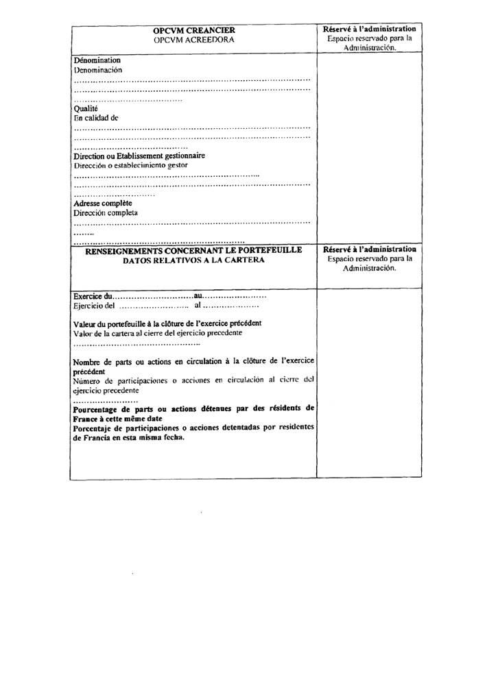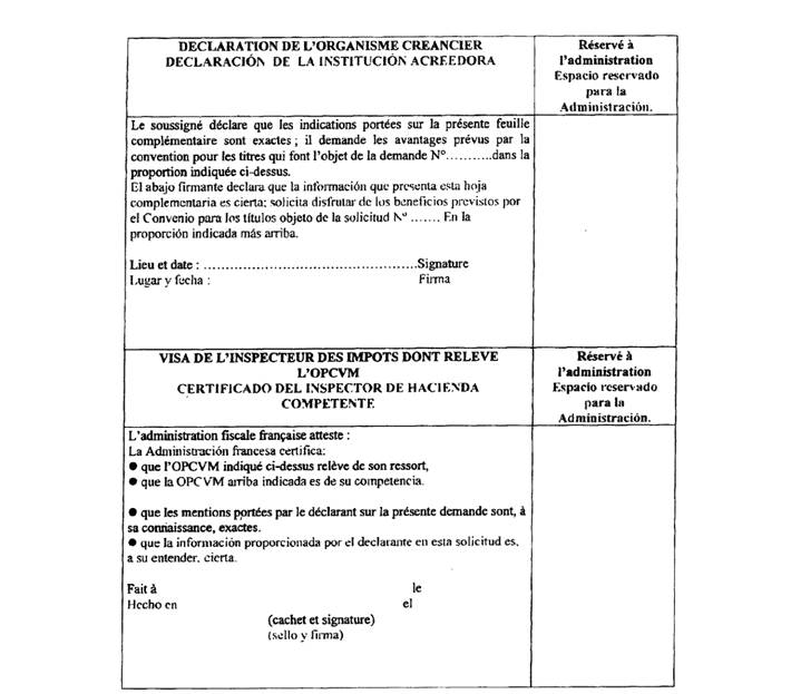 Con este fin, cada vez que la OPCVM presente una solicitud deberá acompañar a los formularios del Convenio utilizados habitualmente e! certificado que se adjunta a esta carta.