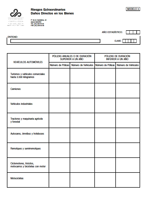 c) Las entidades aseguradoras deberán facilitar la información agregada de las pólizas que amparen daños en vehículos automóviles vigentes al 31 de diciembre de cada año, cuya duración sea anual o por períodos superiores al año, así como la información correspondiente a las pólizas temporales abiertas o renovadas durante el año de referencia, mediante la ficha que figura como modelo 3 del Anexo III.