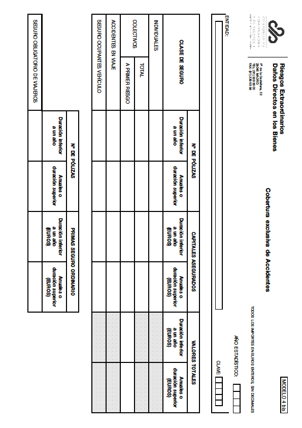 b) Las entidades aseguradoras deberán facilitar la información agregada a que se refiere la ficha que figura como modelo 2 del mencionado Anexo III, relativo a las pólizas en vigor al día 31 de diciembre de cada año que aseguren todo tipo de bienes a excepción de los vehículos automóviles y las obras civiles.