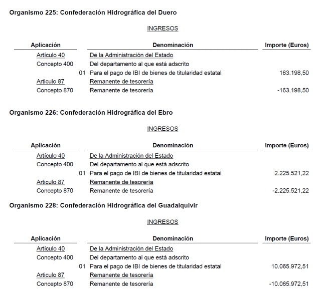 Modificación de los Presupuestos de las Confederaciones Hidrográficas
