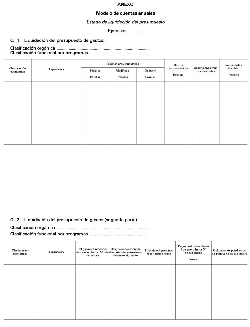 La liquidación del presupuesto de gastos se habrá de ajustar a los modelos que se incluyen para la misma en el anexo de la presente Orden.»