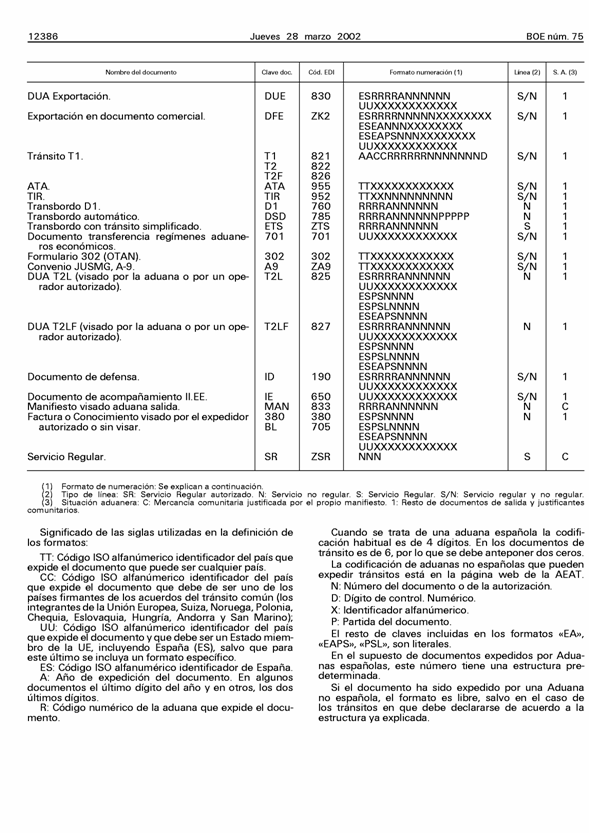 Si el documento ha sido expedido por una Aduana no española, el formato es libre, salvo en el caso de los tránsitos en que debe declararse de acuerdo a la estructura ya explicada.