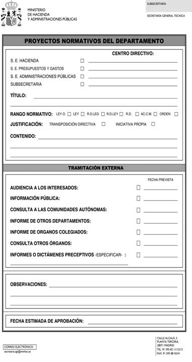 INSTRUCCIONES de la Subsecretaría de Hacienda y Administraciones Públicas 1/2012, de 3 de abril, para la elaboración y tramitación de leyes y disposiciones de carácter general y emisión de informes.