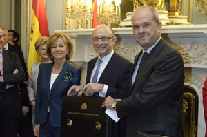 Cristóbal Montoro y Luis de Guindos han recibido el jueves 22 de diciembre las carteras del Ministerio de Hacienda y Administraciones Públicas y del Ministerio de Economía y Competitividad, respectivamente.